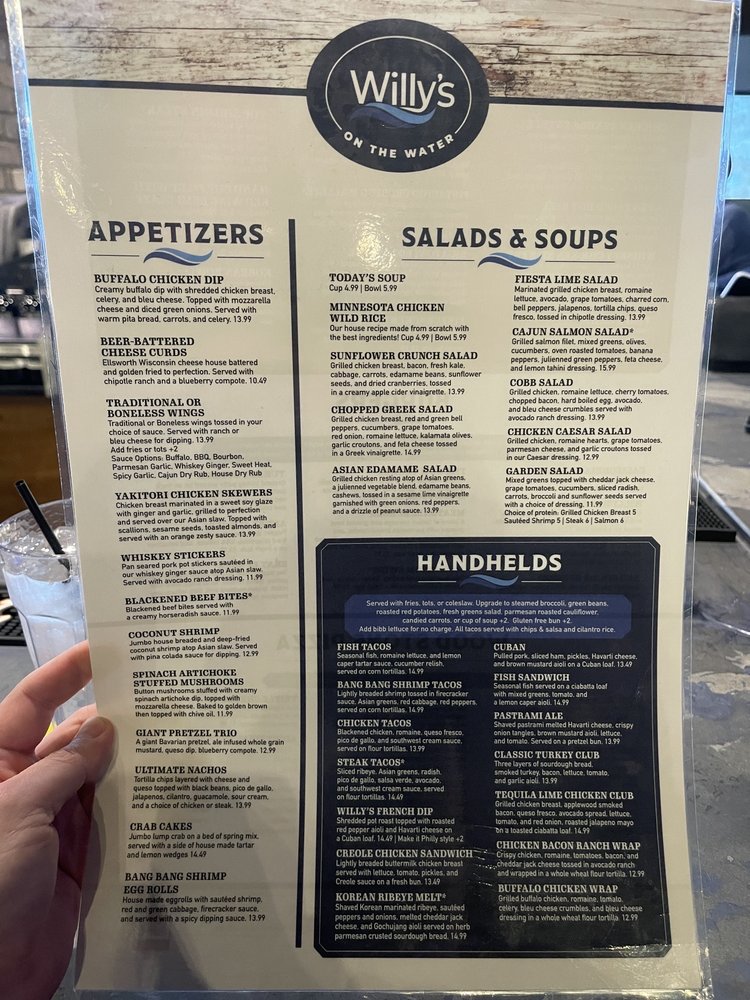 Willy’s On The Water, located in Big Lake, MN, offers a casual dining experience with a focus on pizza, burgers, and bars. Known for its outdoor seating and happy hour specials, this restaurant is perfect for families and friends looking for a relaxed atmosphere by the lake. The menu boasts dishes like Lemon Chicken, Walleye, and Pistachio Crusted Walleye, all highly praised by customers for their taste and portion sizes. The service is friendly and efficient, enhancing the overall dining experience. Whether you're craving a classic burger or want to try something more unique like teriyaki chicken or steak bites, Willy’s On The Water delivers on quality and flavor. Don't miss out on their 2-for-1 beer specials and scenic views of the lake at sunset. Overall, Willy’s On The Water is a must-visit spot for delicious food and a laid-back ambiance.